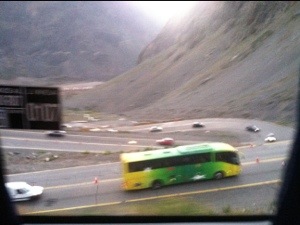 At first this wasn’t much of a problem. Then I started paying attention out the windows. The higher we climbed, it was apparent that either this road wasn’t done or they were doing some serious construction. Every time the bus took a left turn, the right shoulder of the road, you know the side that faced down the cliff of insanity, was getting smaller and smaller to the point that by the time we were 3/4 of the way up the shoulder was no more than a few measlyfeet. The woman in the front row of the second level of the bus was literally crying and burying her head in her boyfriends shoulder while muttering prayers in Spanish each time we took the turn. I prayed to the gods of physics that whatever laws of gravity and trigonometry needed to come together to not have this bus tip over on the next 30 degree turn please help us out.
