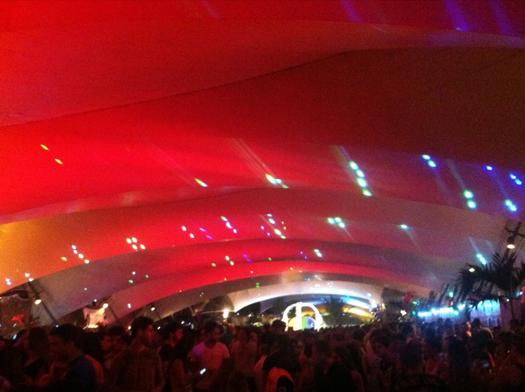 Anywho, music was good. Light show was good. People were nice – and apparently there’s no such thing as too short of a dress in Brazil. While the attendees sported quite the array of wardrobe selections, the Brazilian girls pretty much all wore dresses so tight and short you could see their butt cheeks. Which really wasn’t that terrible because at least Brazilians have hot asses. In America there’d be saggy cellulited shit drooping all over the place if we dressed like that. Oh wait, some people do. :::shudder::: Aside from their asses you could also tell the real Brazilians because they were the ones “glistening” instead of sweating profusely while they danced in the sweat hut. Whether that’s due to an acclimation to the weather or botox – only the Cariocas know for sure.