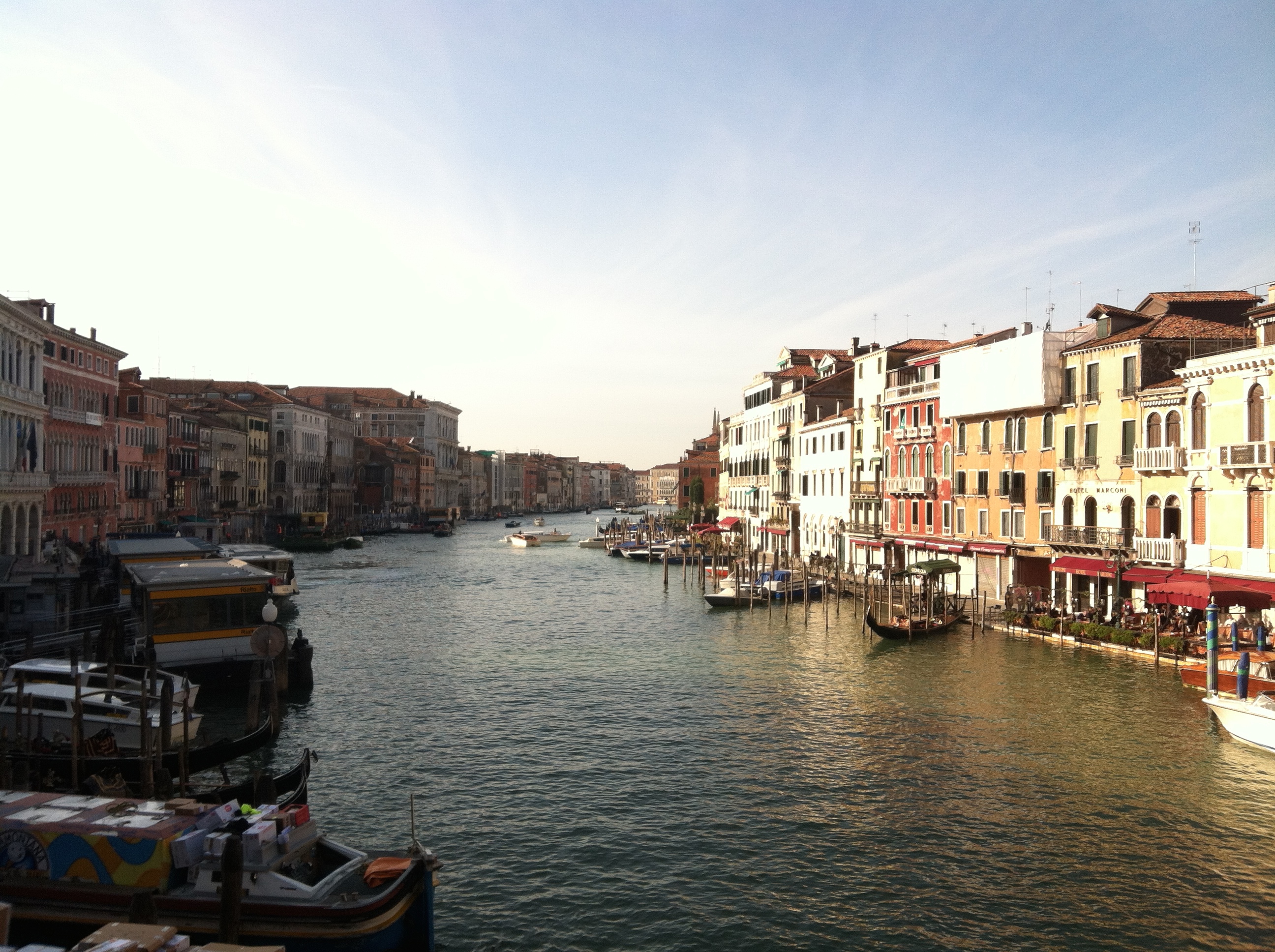 Crisis avoided.  I darted down a street and headed into the nearest pub which I believe was founded in 1991.  Ordered a glass of wine and started talking to the bartenders who both turned out to be awesome.  The girl and I started discussing Venice and I told her about some of my impressions thus far: my fear of the alleys and the tourists.  To this she responded that it was an incredibly expensive town, even for locals and “The alleys are safe.  If it’s quiet you can hear footsteps from people from three alleys away.  There is petty crime here, but no rape.”  Sounds good.  I also tried to buy them a shot of vodka and Extra Joss (my favorite only available in certain SEA country shot) but they ended up buying it for me.  And they gave me directions and cheaper instructions to get to my train station.  Love you guys!